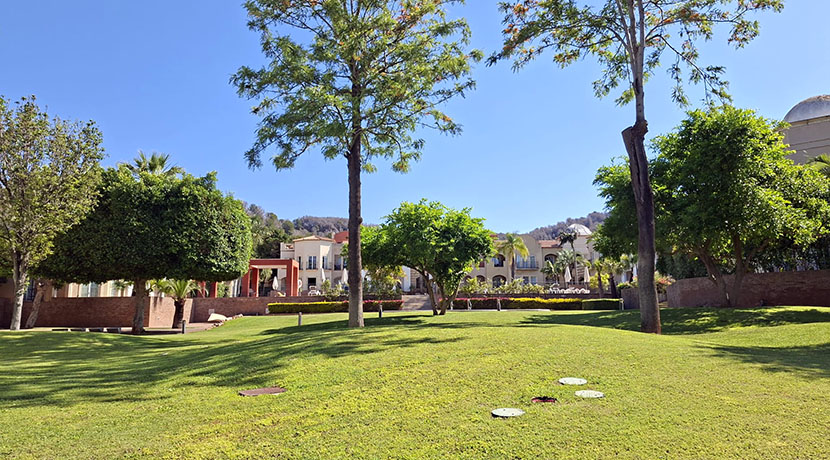 Las áreas comunes de La Sella Premium están concebidas como un gran parque ajardinado, con abundante vegetación y zonas de sombra natural. Destaca un jacuzzi al aire libre y una piscina de gran tamaño, rodeada de terrazas con hamacas y sombrillas, creando un verdadero oasis de tranquilidad, junto al campo de golf y el Parque Natural del Montgó.