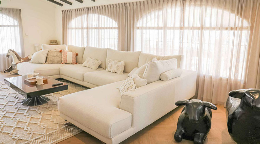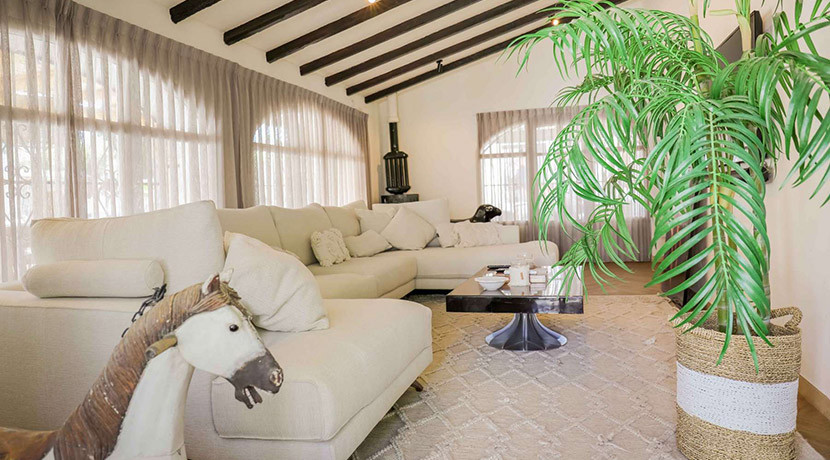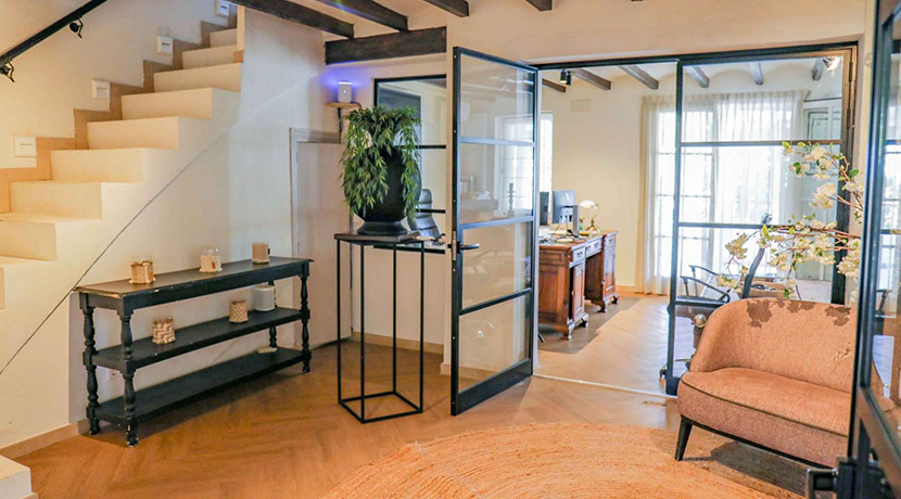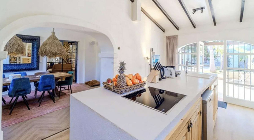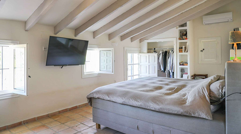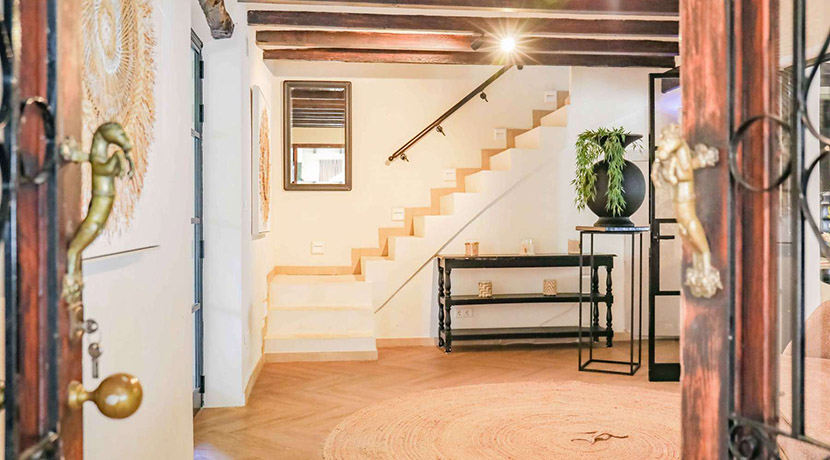 Una elegante escalera conduce a la planta superior, donde se encuentra la lujosa suite principal, equipada con vestidor y baño en suite. Desde aquí, podrá salir a su terraza privada y disfrutar de las impresionantes vistas panorámicas al majestuoso Montgó.